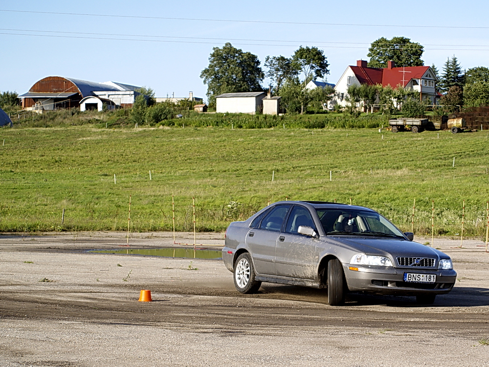 Gavom pasiūlymą iš forumiečio Robertino susirinkti Maišiagaloje, uždaroje trasoje, susiorganizuoti mini slalomą, pasimokyti manevravimo subtilybių puikiai parengtoje trasoje - negalėjome atsisakyti! Galvojom teks gerai pravaikyti savas volvas, bet supratome, jog esmė ne kuo greičiau ir aršiau pravažiuoti trasą, o atlikti tai kuo kruopščiau ir tvarkingiau:)